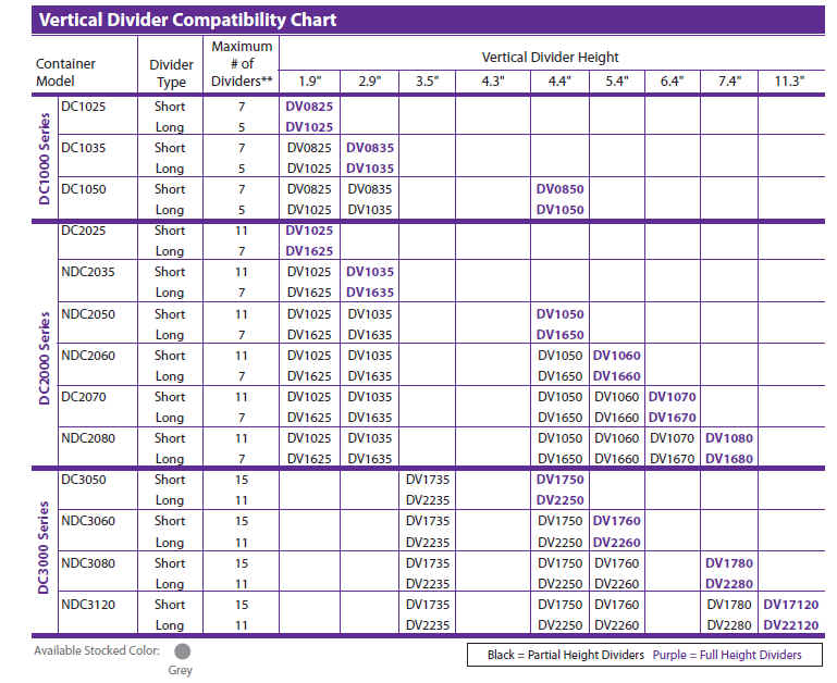 dividers are available for all models, excluding DC1025.